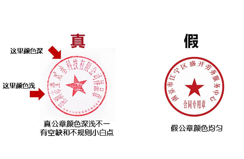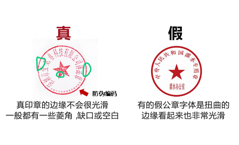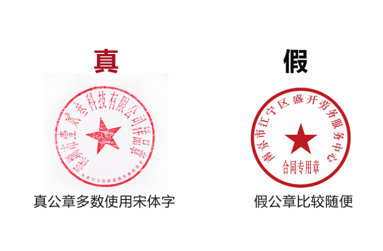 如何才能辨认公章真伪呢?首先要熟悉公章的规则尺寸。国家对公章字体有严格要求,一般都是宋体和仿宋,如果是其他字体,必须警惕。此外,除了中央国家机构以外,公章直径一般小于5.0公分,企业大多是4.0,如果过大或过小,一般来说是假章。