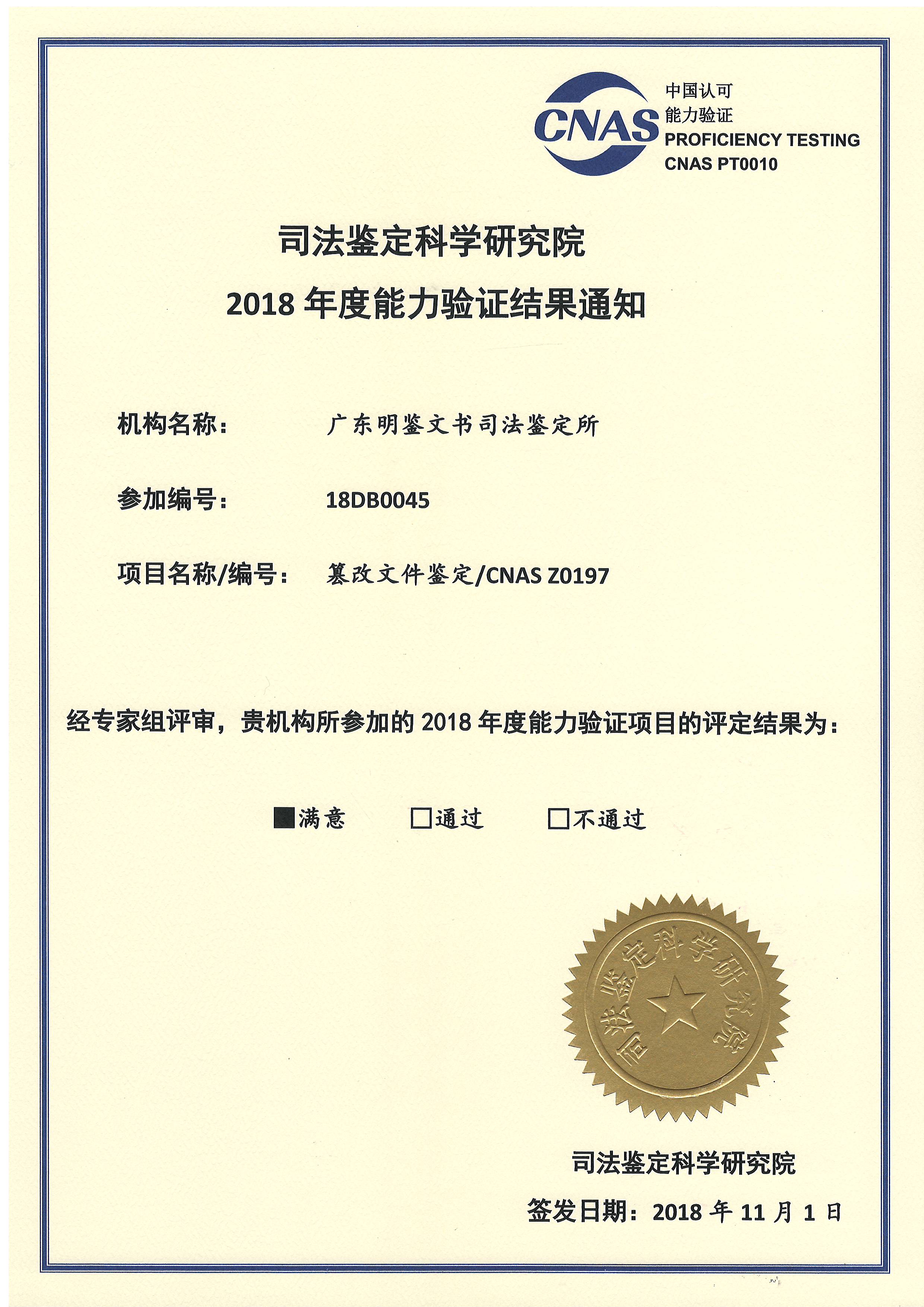 2018年能力验证结果通知(交通事故痕迹鉴定)
